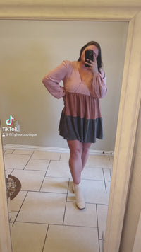 This suede colorblock mini dress is the perfect addition to any wardrobe. Featuring a faux suede construction with a tiered skirt in pink and browns, this dress is both soft and flowy. Crafted with a generous 98% polyester and 8% spandex blend and a surplice neckline with button closure, this dress is designed to offer comfortable, timeless style. Very versatile - pairs great with sandals, heels, or cowboy boots!